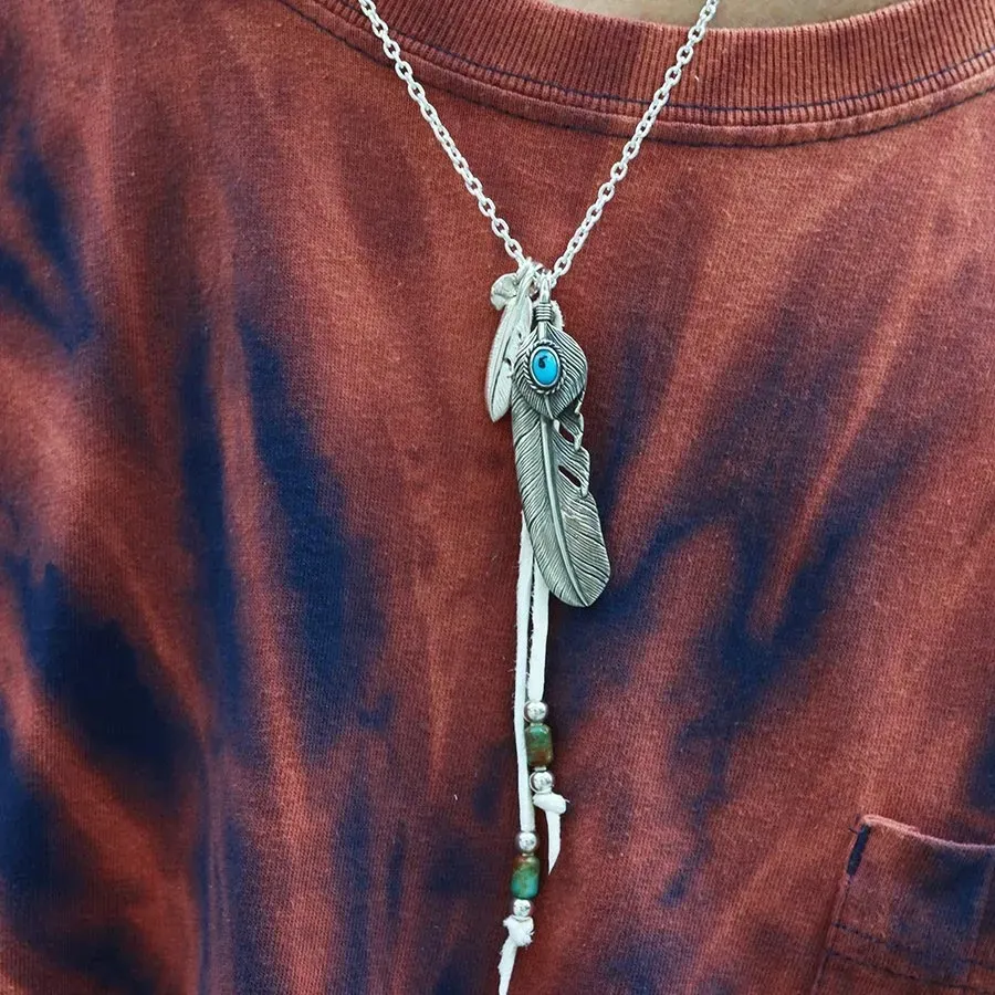 SV925 ターコイズ ガラス 鹿革紐